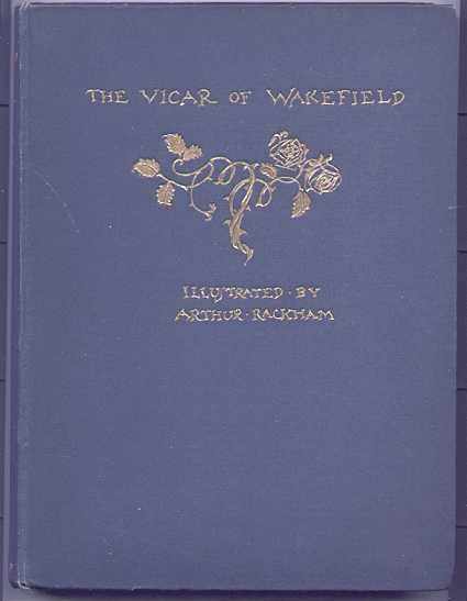 The Vicar of Wakefield, Oliver Goldsmith, Illustrated by Arthur Rackham, George G. Harrap & Company, Ltd., London, 1929. First Edition Thus. 10 1/4" height X 7 3/4" width. Blue cloth boards hardcover with gilt stamped front and spine. Top edges gilt, bottom and fore edges deckled. 232 pages. 12 full page colour plates, Hors Texte, versos blank, and numerous black & white illustrations.
