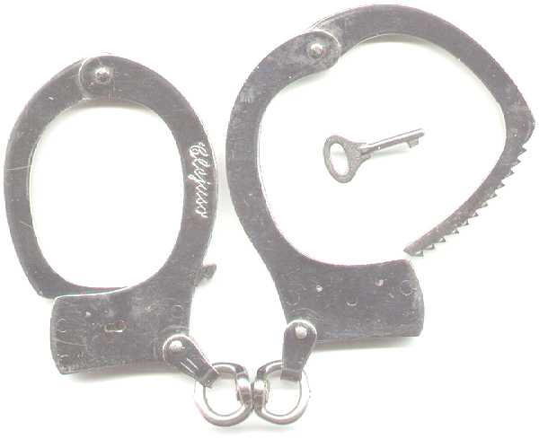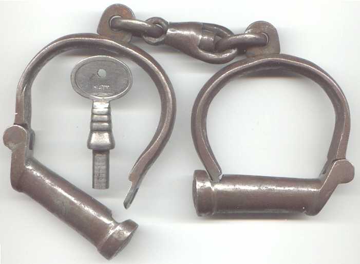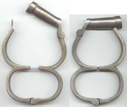 Manacles of the World: A Collector's Guide to International Handcuffs, Leg Irons & Other Miscellaneous Shackles & Restraints, T. L. Gross, privately published, St. Louis, MO, 1997, 11 " height X 8 1/2" width, 162 pages, softcover. First Printing, First Edition (May 1997). Over 170 photographs & illustrations. The seminal title on the topic.