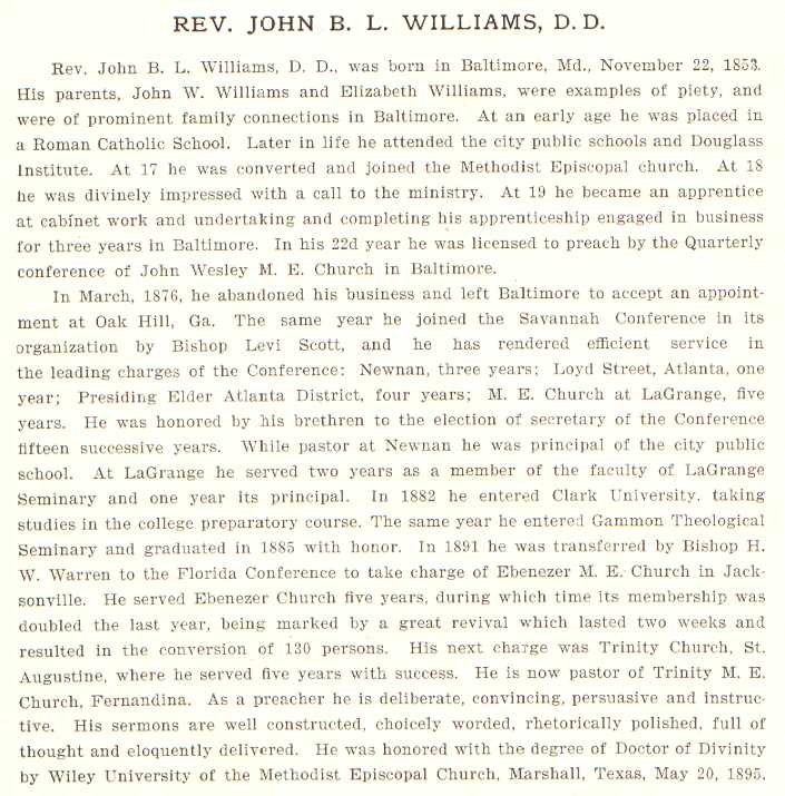 Click here to read it. The Reverend Williams died in 1944 in Jacksonville.