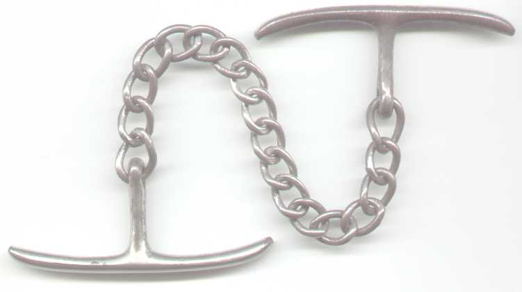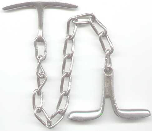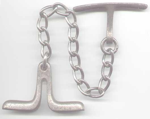 This early, splendid Bean chain come along is stamp-marked PAT'D MAY 6 '84 across each side -- i.e., both sides -- of the T-handle. Of nickel plated steel, with virtually all the plating intact.