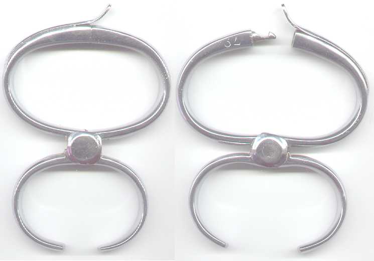 Click here to see another, also with rosette-embossed pivot covers and stamp-marked HIATT STEEL on one side, the other side stamp-marked 104. Coincidentally, 104 was the model number of Hiatt's non-adjustable darby Best London Handcuffs, which cost only 40% the price of Hiatt's Steel Grip; i.e., the Steel Grip was 250% as expensive.
